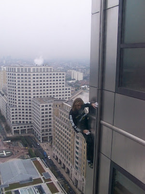 To Alain Robert, "a city is like a range of mountains, with one little difference: there will always be new skyscrapers under construction."Alain, who has been dubbed 'Spiderman' by the press, has a different sense of fun than most people. He has achieved worldwide celebrity status, some call it notoriety, by climbing the world's tallest and most difficult buildings with nothing more than his bare hands. Spiderman has climbed over 70 skyscrapers and monuments around the world including the Sears Tower, Chicago, and the Petronas Twin Towers in Kuala Lumpur. His greatest success so far: the National Bank of Abu Dhabi with over 100,000 spectators! More images after the break...