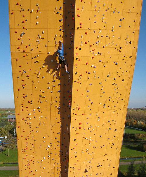 The world's highest climbing wall is situated in the town of Groningen, The Netherlands. It is 37 metres (121 ft) high and is known as the Excalibur. More images after the break...